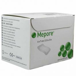 Description:Mepore is a breathable, absorbent, self-adhesive dressing for a wide variety of wounds with low to moderate exudate levels – such as surgical wounds, cuts, and abrasions.The dressing fixes gently and securely to the skin with a skin-friendly, water-based adhesive, and it’s air permeable to prevent maceration of the wound.Water-based, solvent-free adhesive provides gentle fixationWound contact layer is low-adherent Breathable to prevent maceration and help maintain a moist wound environmentEasy-to-remove protection paper is also asepticFabric is conformable and flexible to allow body movementPack:60'S