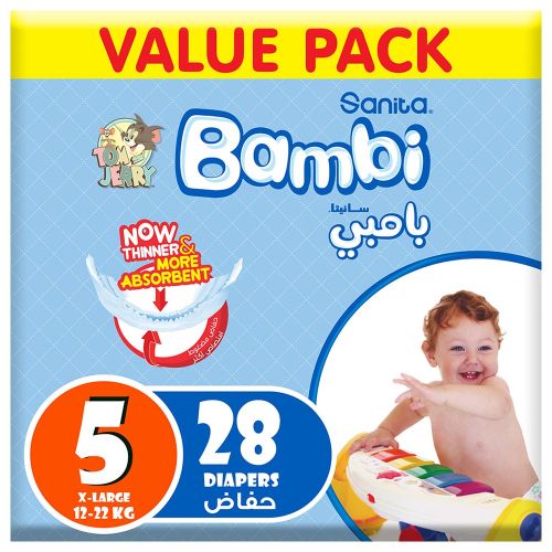 Sanita Bambi – Baby Diapers Value Pack Size 5, X-Large, 12-22kg – 28 Count